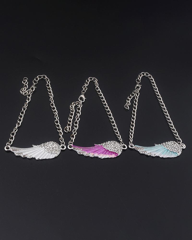 1pc Angel Wings Rhinestone Pendant Anklet, Pink