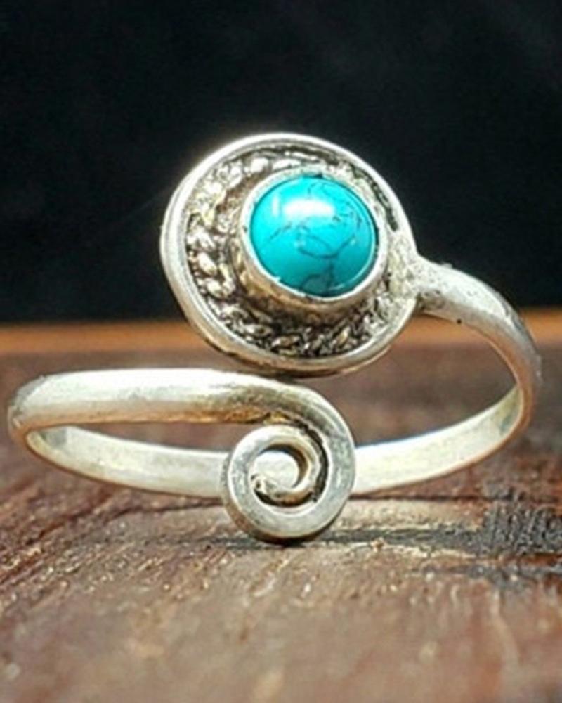 1pc Bohemian Tribal Geometric Turquoise Opening Ring, Silver