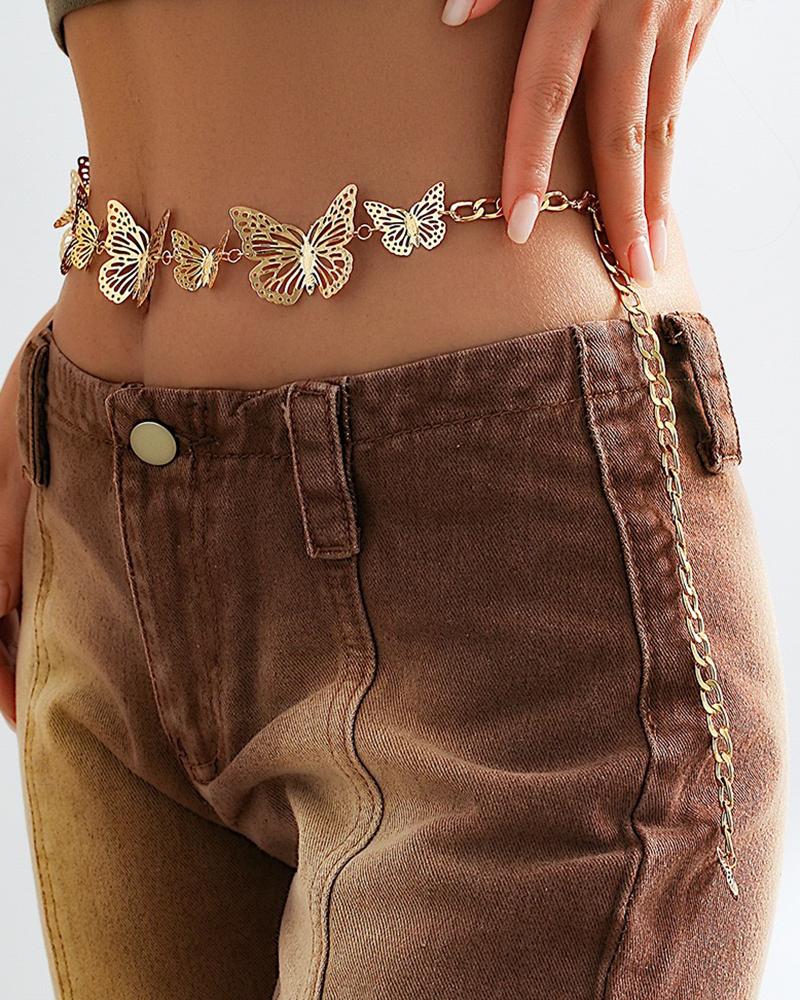 1pc Butterfly Pattern Waist Chain Fashionable Body Belt, Gold