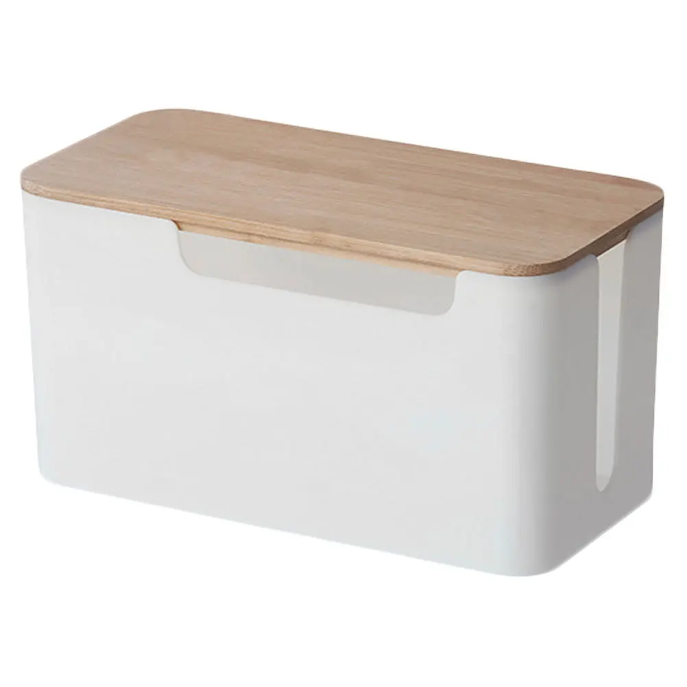 1pc Cable Box White Large Opening Abs Material Rounded Corners Detachable Cover Cable Organizer Storage Box For Hub Power Plug