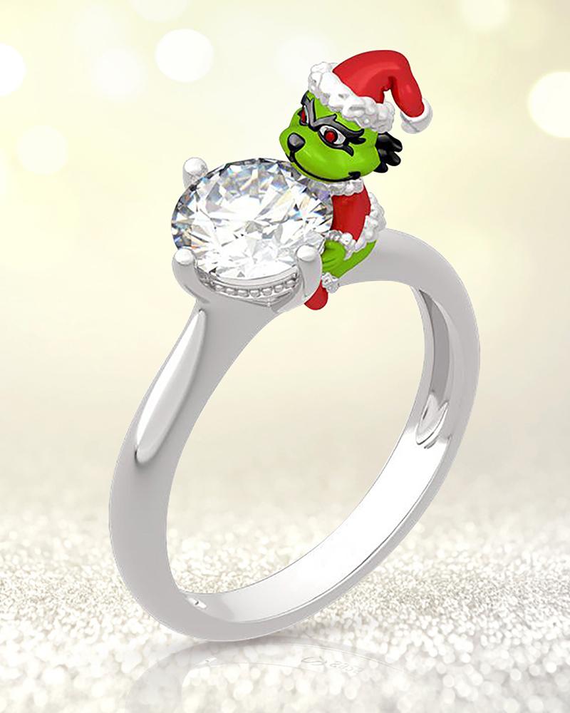1pc Christmas Graphic Rhinestone Decor Ring, White