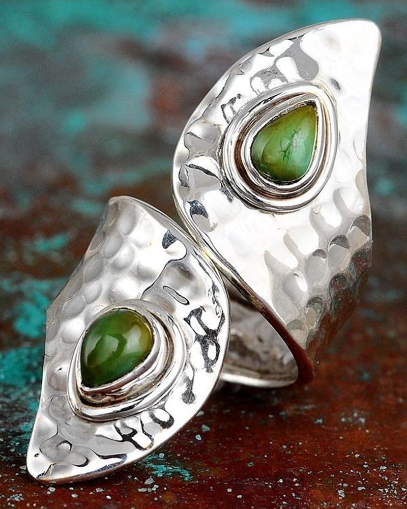 1pc Double Turquoises Asymmetrical Opening Ring, Silver