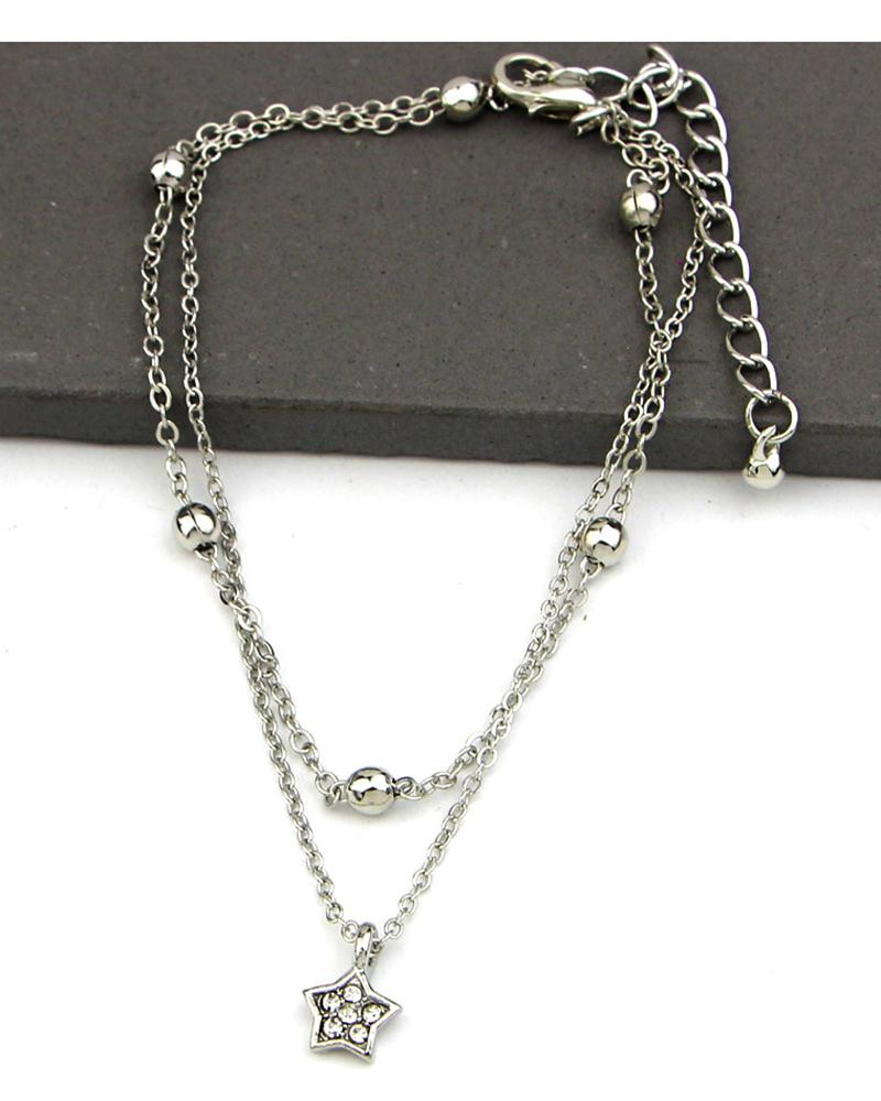 1pc Faux Zircon Heart Pattern Multi-layer Beach Anklet, Style2