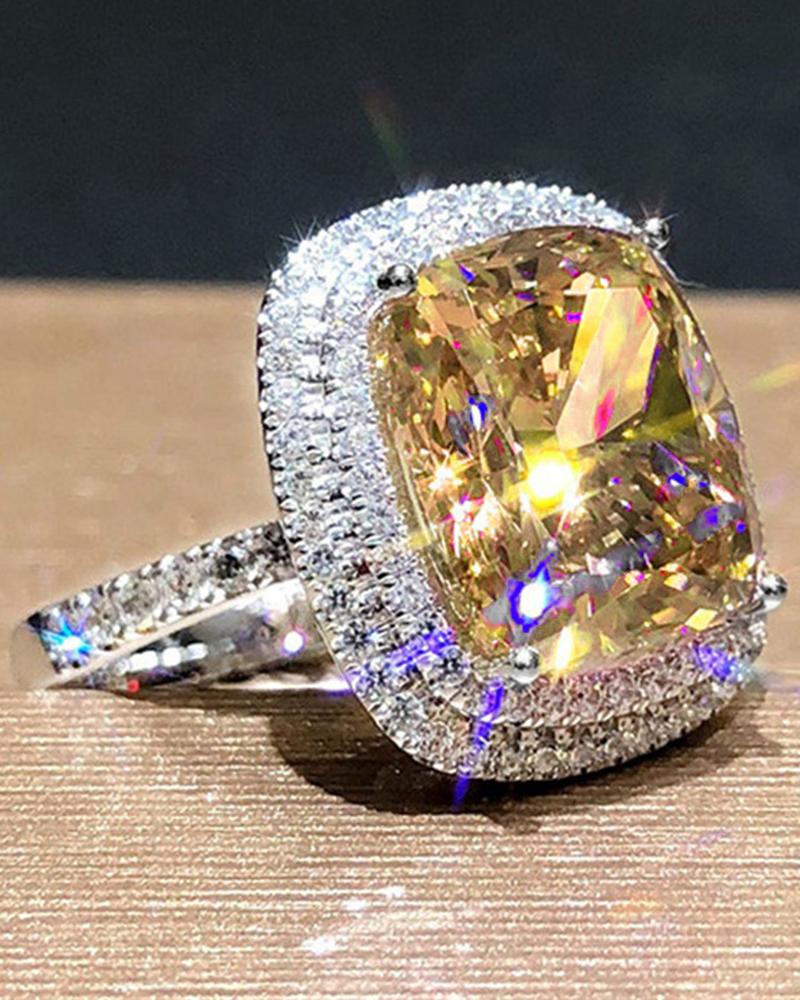 1pc Faux Zircon Rhinestone Square Wedding Ring, Yellow