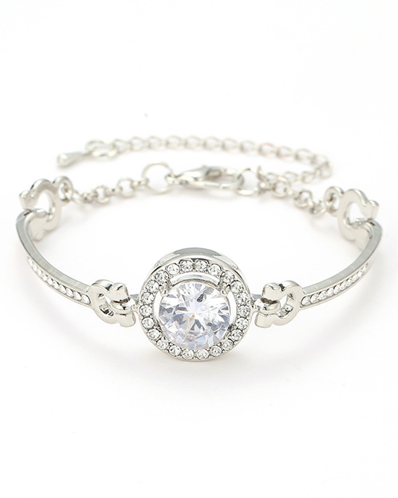 1pc Geometric Rhinestone Fashion Jewelry Gift Bracelet, Silver