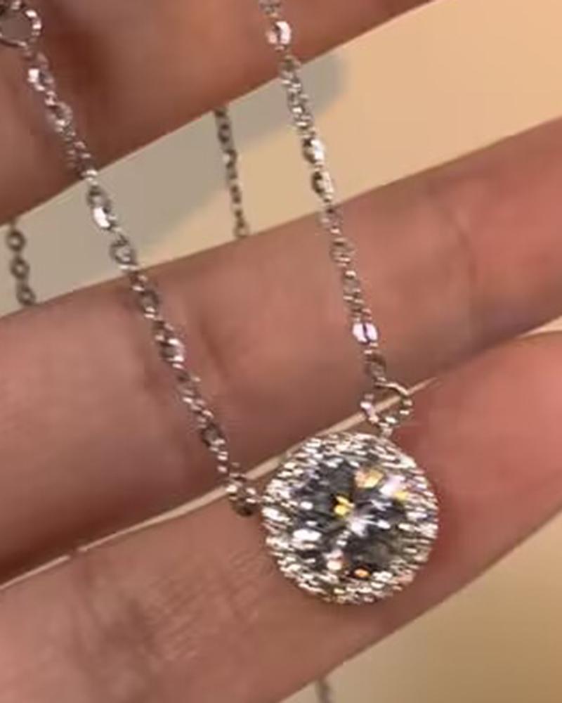 1pc Geometric Rhinestone Gift Necklace, Silver