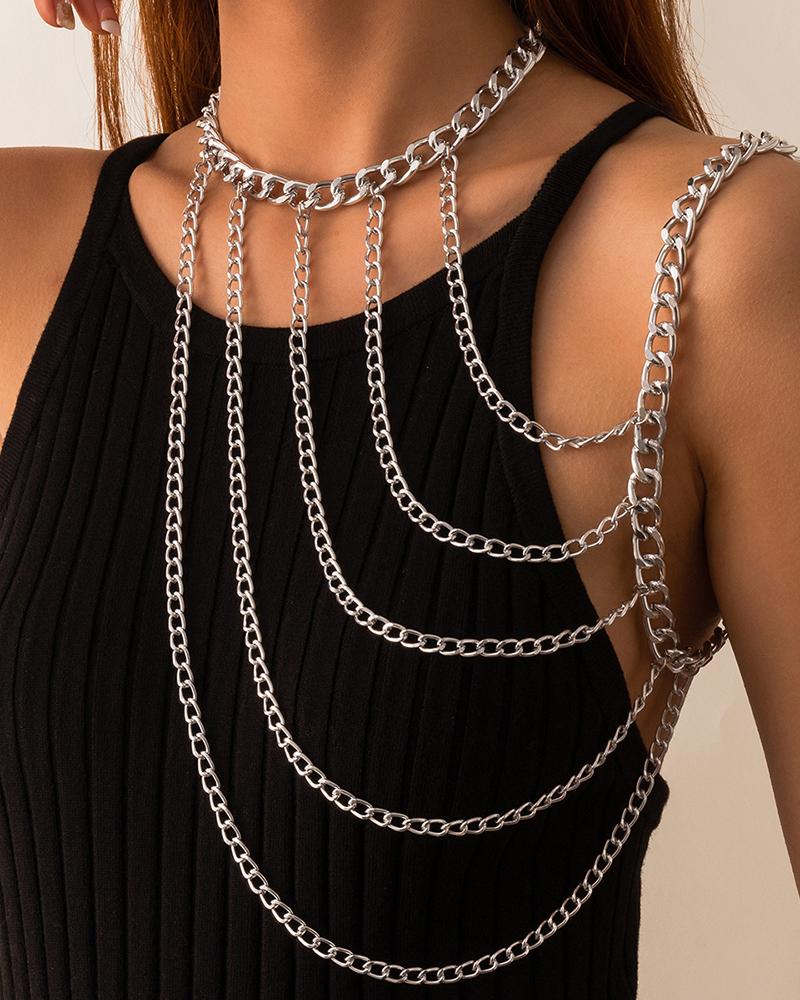 1pc Halter Layered Tassel One Shoulder Body Chain, Silver