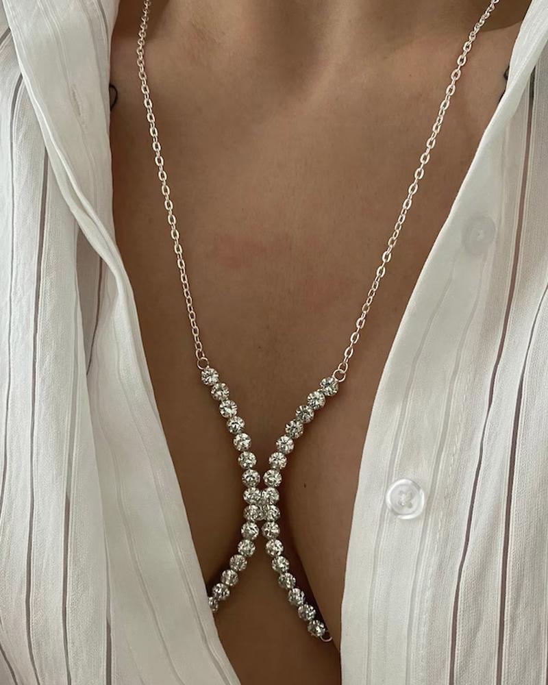 1pc Halter Rhinestone Bra Body Chain, Silver