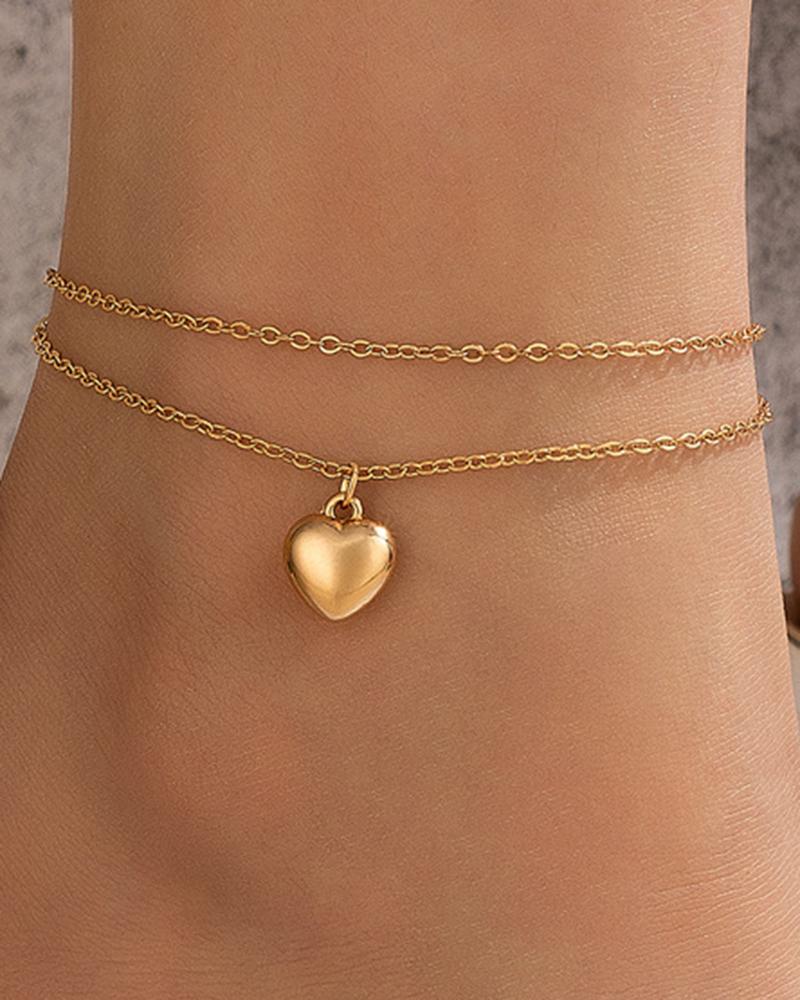 1pc Heart Pattern Layered Chain Anklet, Gold