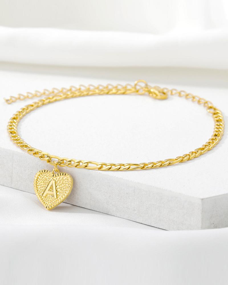 1pc Heart Shaped Letter Embossed Chain Anklet, Style1