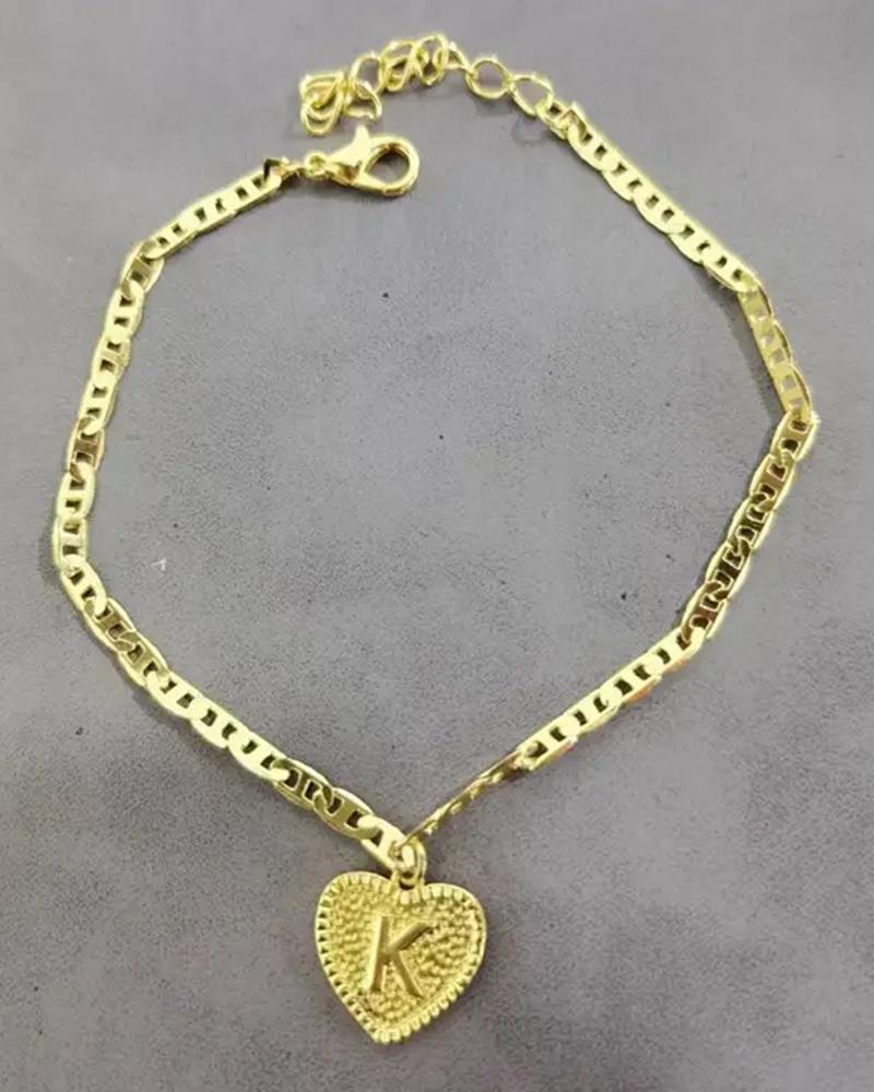 1pc Heart Shaped Letter Embossed Chain Anklet, Style10