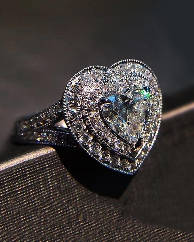 1pc Heart Shaped Rhinestone Ring, Silver