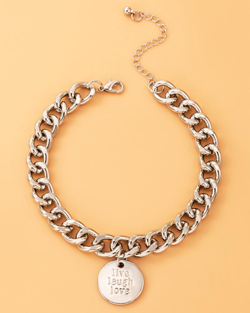 1pc Live Laugh Love Pattern Chain Anklet, Silver