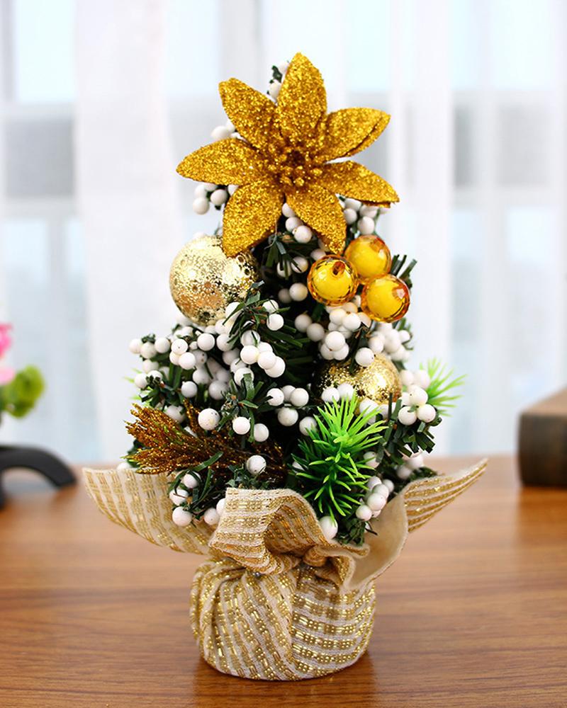 1pc Mini Christmas Tree Tabletop Christmas Tree With Christmas Ball Ornament Table Decoration, Style2