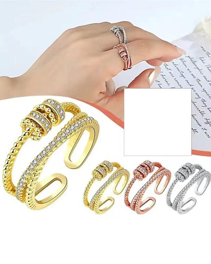 1pc Mother's Day Rhinestone Spin Detail Ring, Gold