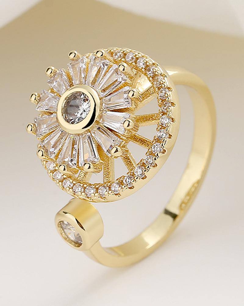 1pc Mother's Day Wedding Gift Spring Clover Pattern Opening Adjustable Ring, Gold
