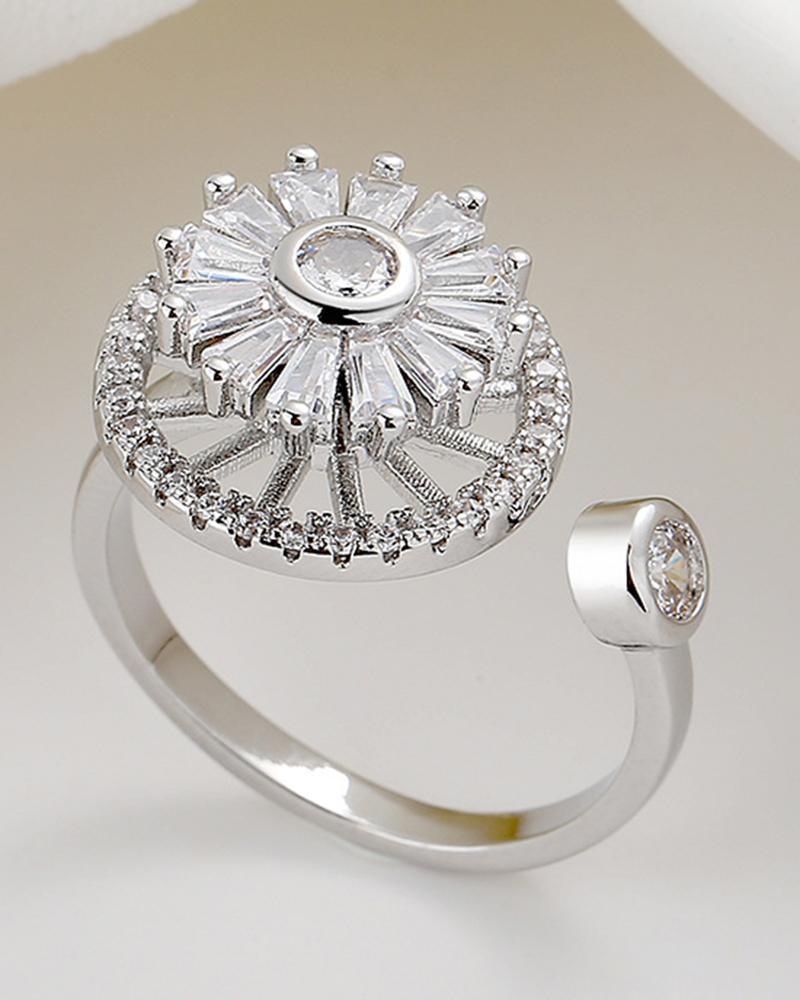 1pc Mother's Day Wedding Gift Spring Clover Pattern Opening Adjustable Ring, Silver