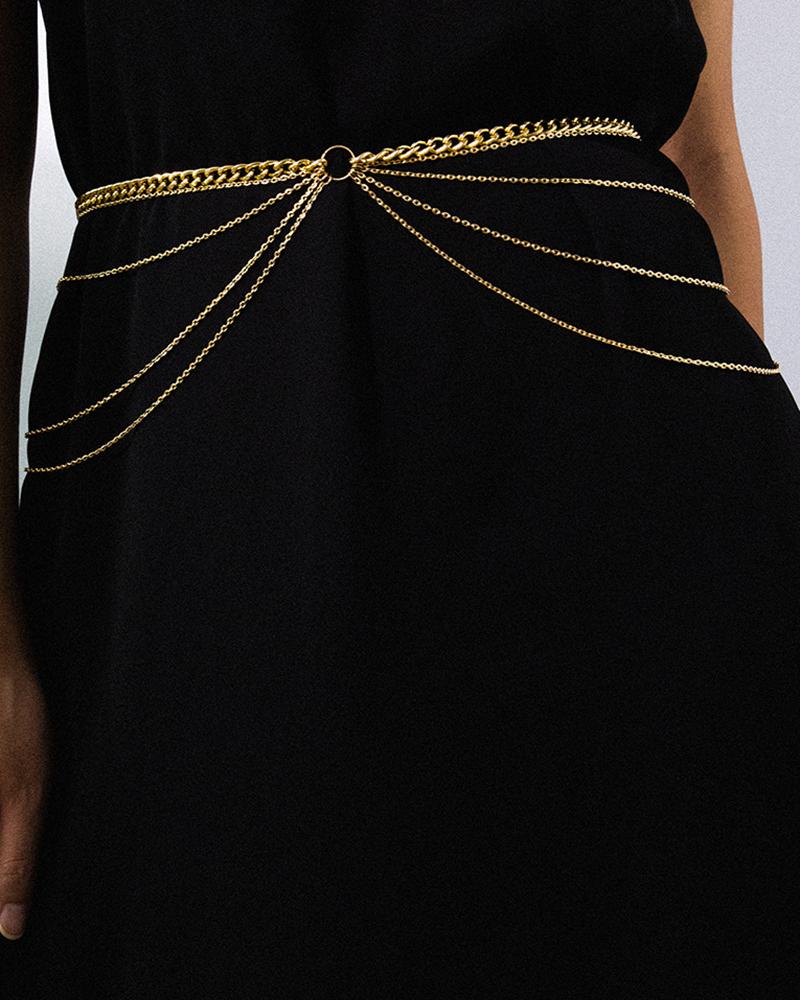 1pc Multi-layer O-Ring Waist Chain, Gold