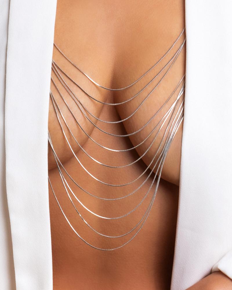 1pc Multi-layer Tassel Shoulder Body Chain, Silver