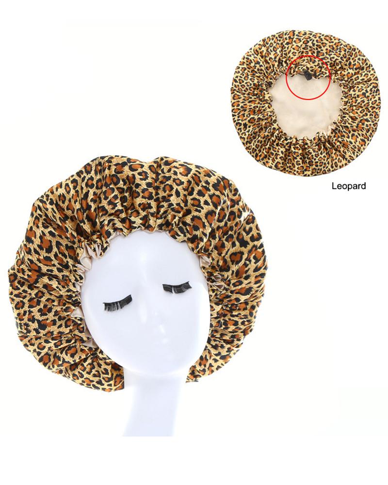 1pc Night Sleep Cap Adjustable Drawstring Satin Bonnet For Curly Hair Care, Leopard