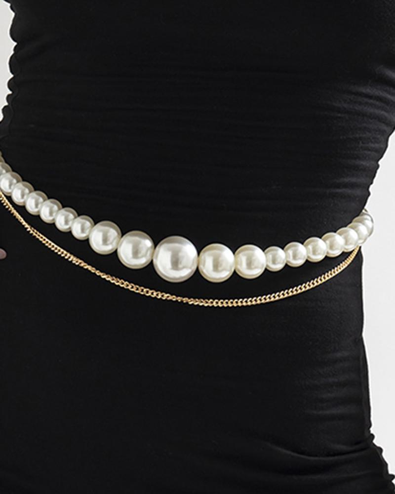 1pc Pearls Beaded Multi-layer Waist Chain, Gold