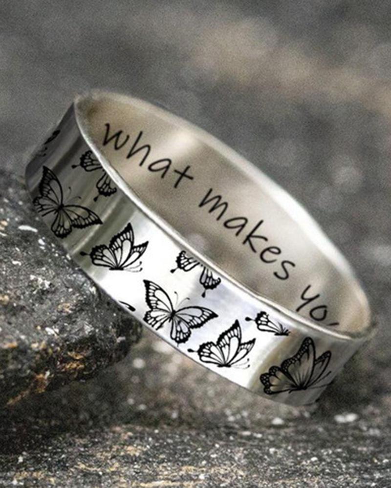 1pc Retro Letter Pattern Butterfly Ring, Silver