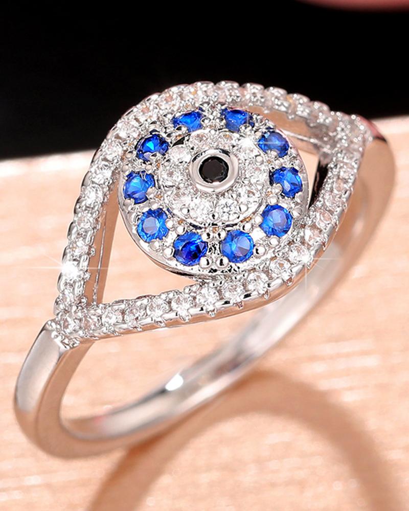 1pc Rhinestone Blue Eye Hollow Out Evening Party Ring, White