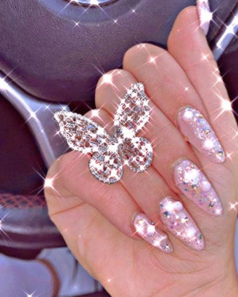 1pc Rhinestone Butterfly Pattern Ring, Pink