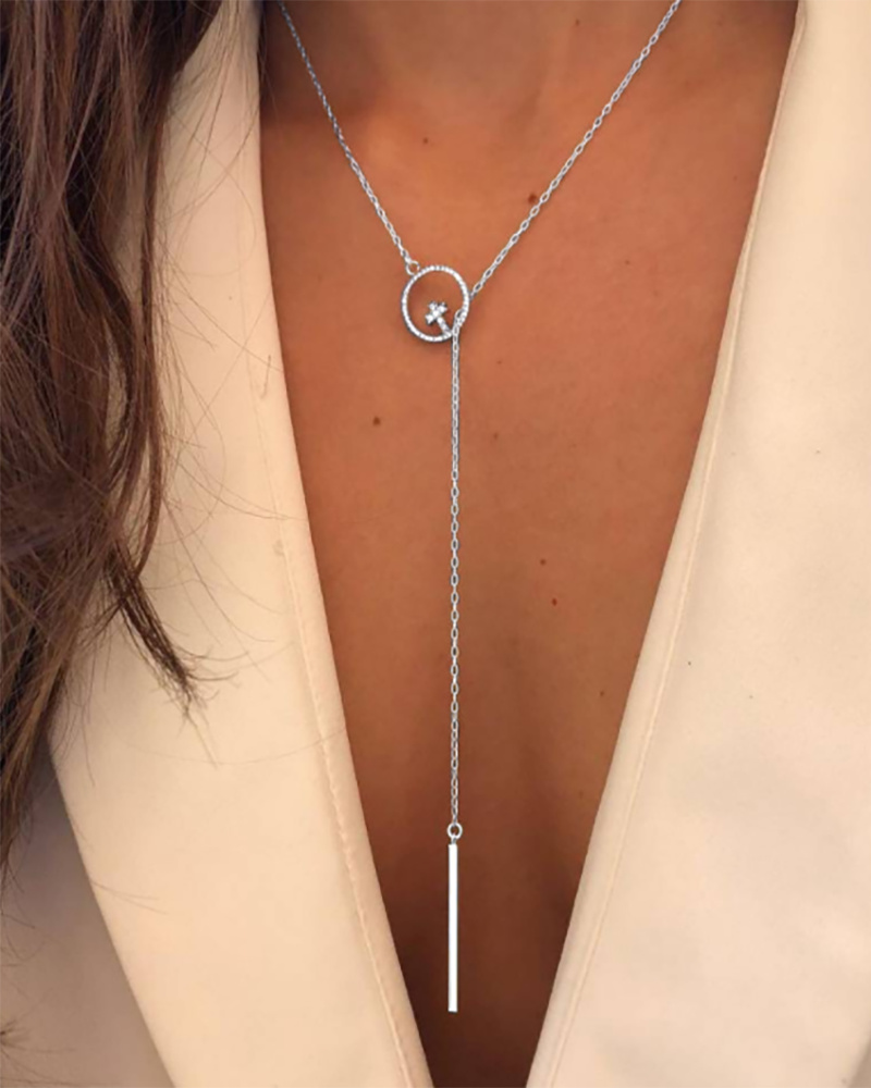 1pc Rhinestone Cross Pattern Tassel Necklace, Silver