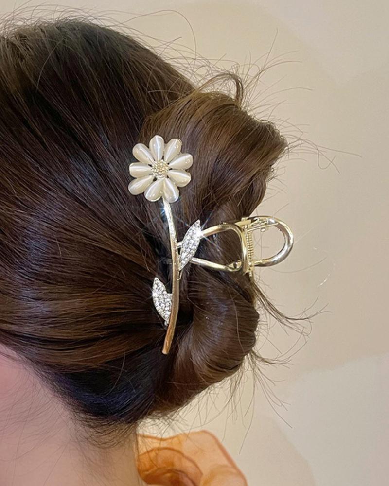 1pc Rhinestone Daisy Design Hair Claw, Gold