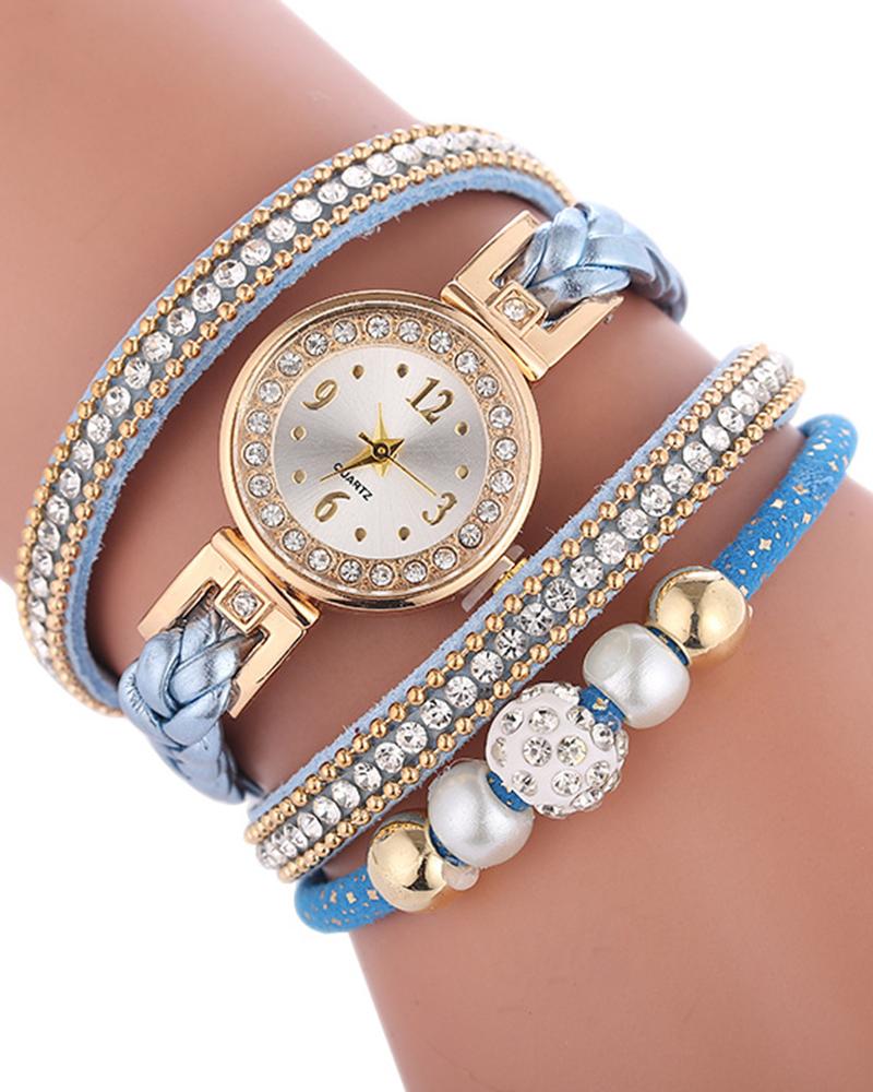 1pc Rhinestone Decor Bangle Quartz Watch, Blue