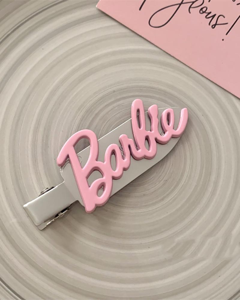 1pc Rhinestone Decor Barbie Letter Pattern Duckbilled Hair Clip, Style2