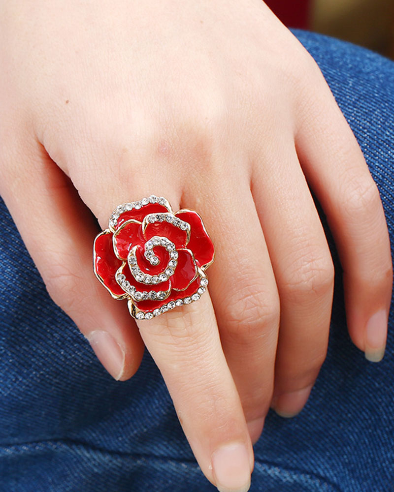 1pc Rhinestone Decor Floral Shaped Ring, Red