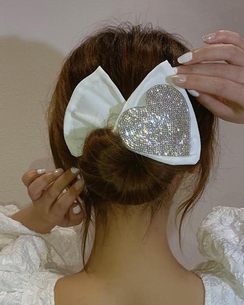 1pc Rhinestone Decor Heart Pattern Hair Claw, White