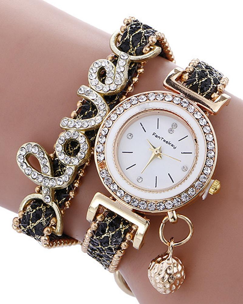 1pc Rhinestone Decor Lover Letter Pattern Bangle Quartz Watch, Black