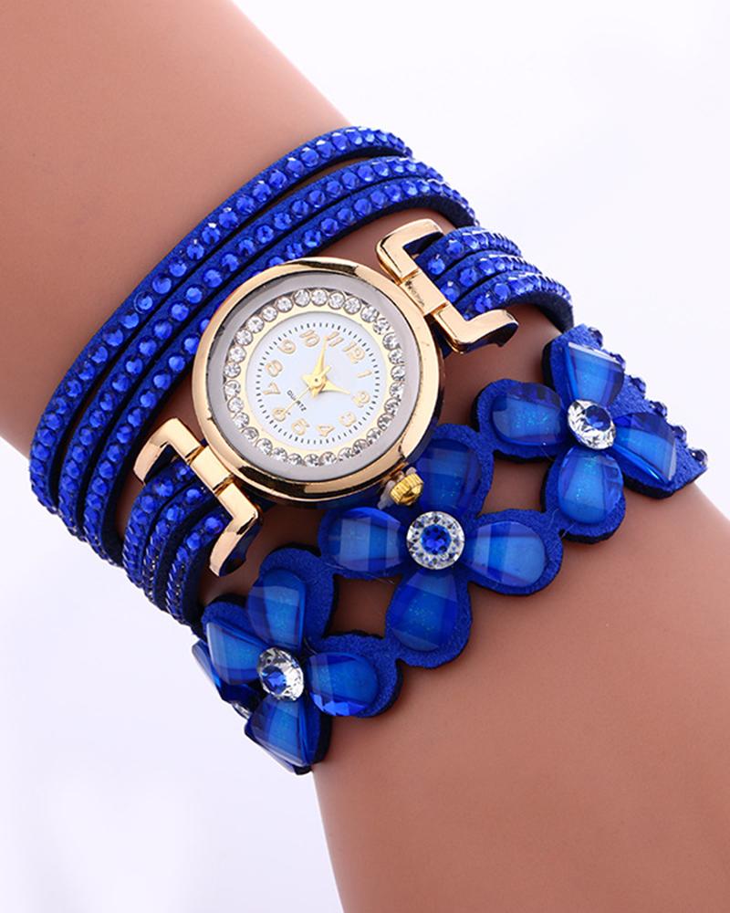 1pc Rhinestone Floral Pattern Stackable Bangle Quartz Watch, Dark blue