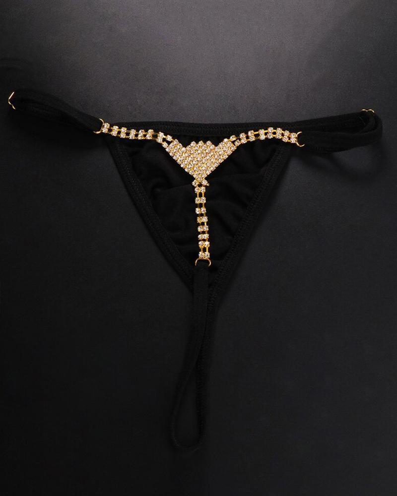 1pc Rhinestone Geometric Chain Decor Chain Decor Thong Panty, Gold