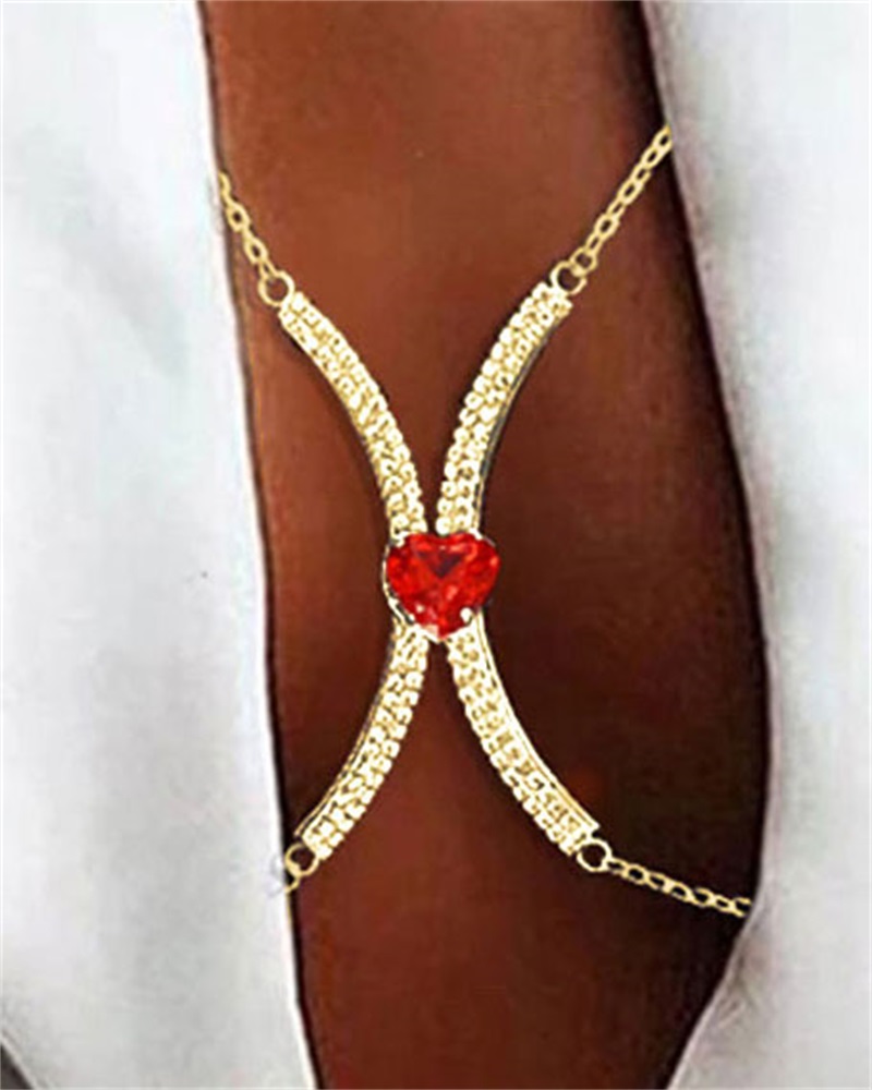 1pc Rhinestone Heart Decor X-Shaped Body Chain, Red