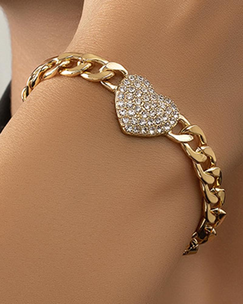 1pc Rhinestone Heart Pattern Chain Bracelet, Gold