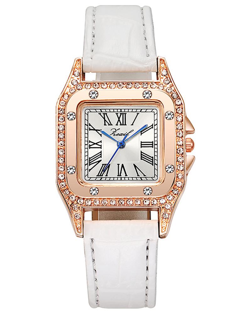 1pc Rhinestone Leather Band Square Quartz Watch, White