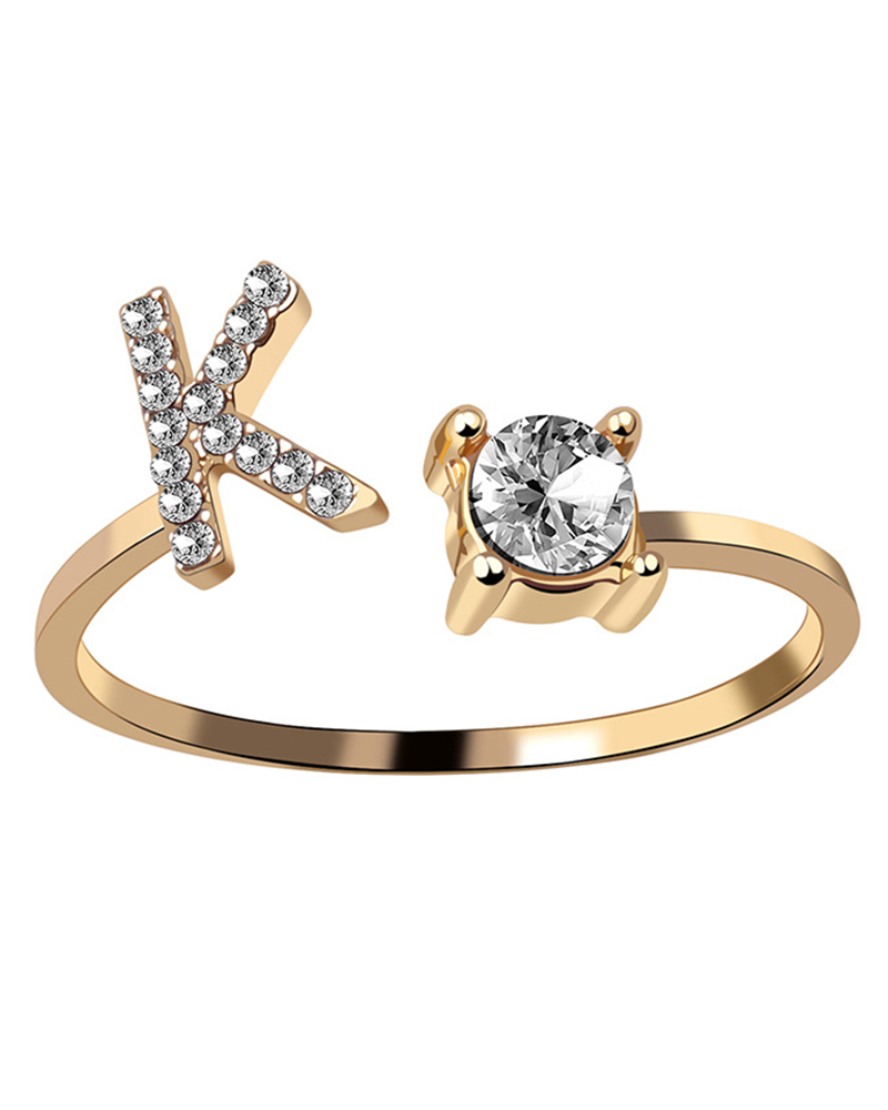 1pc Rhinestone Letter Shaped Opening Ring, Style4
