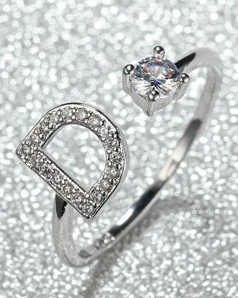 1pc Rhinestone Letter Shaped Opening Ring, Style4