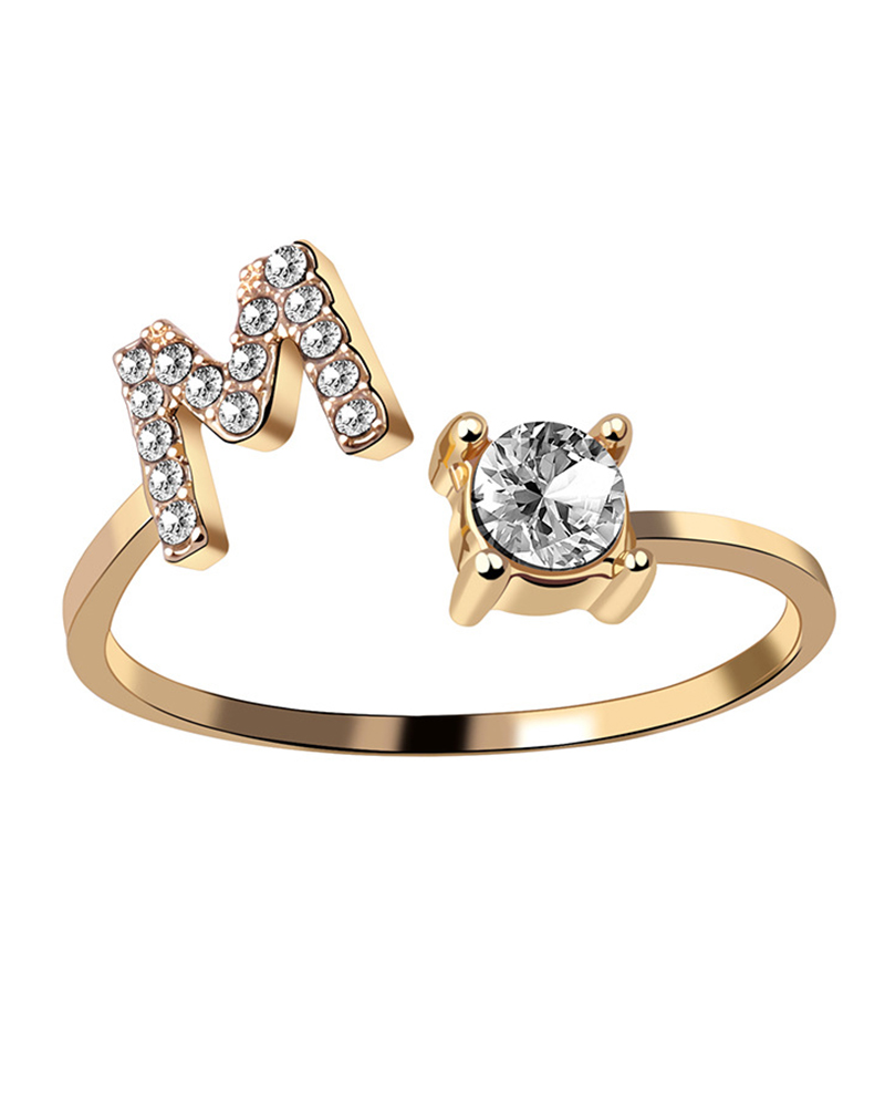 1pc Rhinestone Letter Shaped Opening Ring, Style6