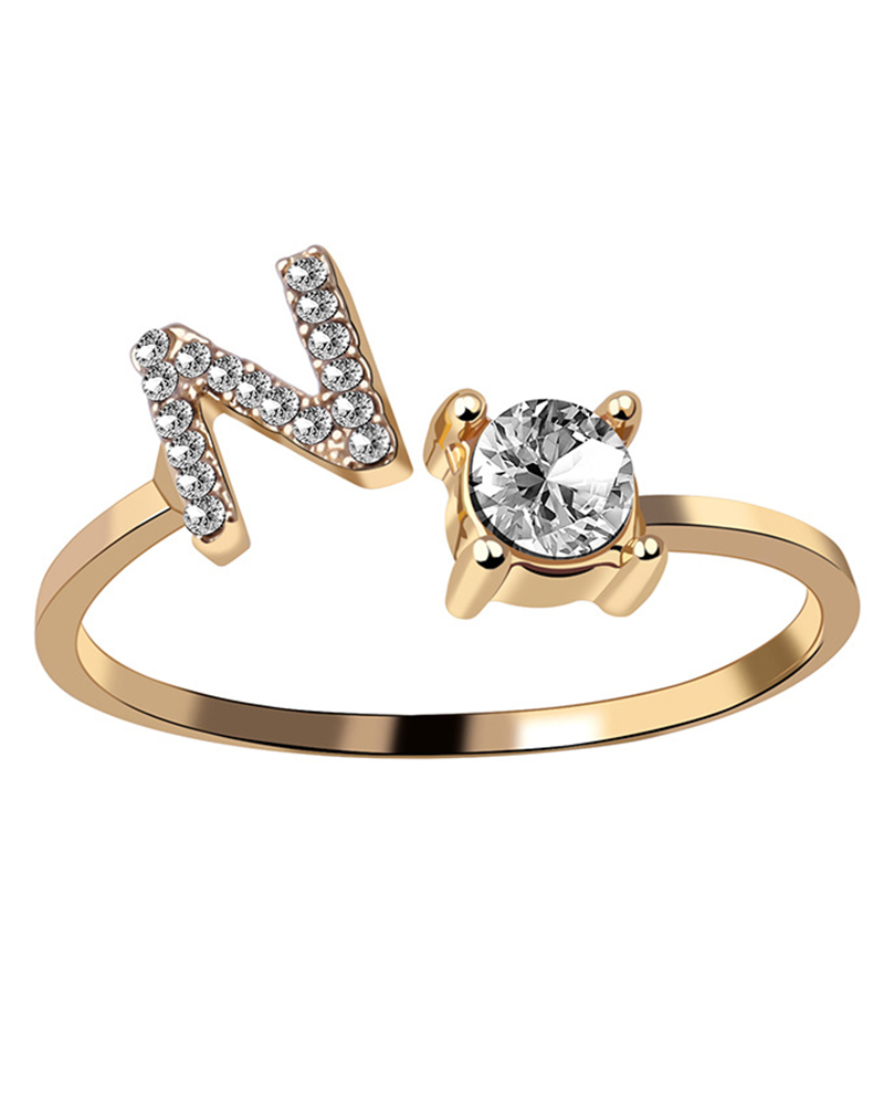 1pc Rhinestone Letter Shaped Opening Ring, Style7