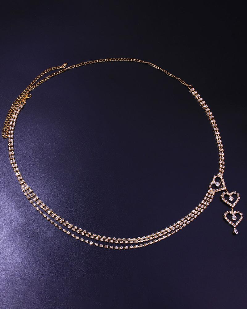 1pc Rhinestone Multi-layer Hollow Out Heart Pattern Waist Chain, Gold