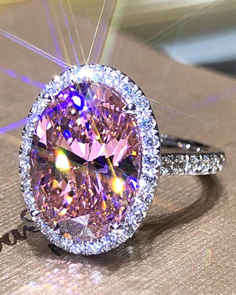 1pc Rhinestone Oval Shaped Crystal Stone Wedding Party Gift Ring, Pink