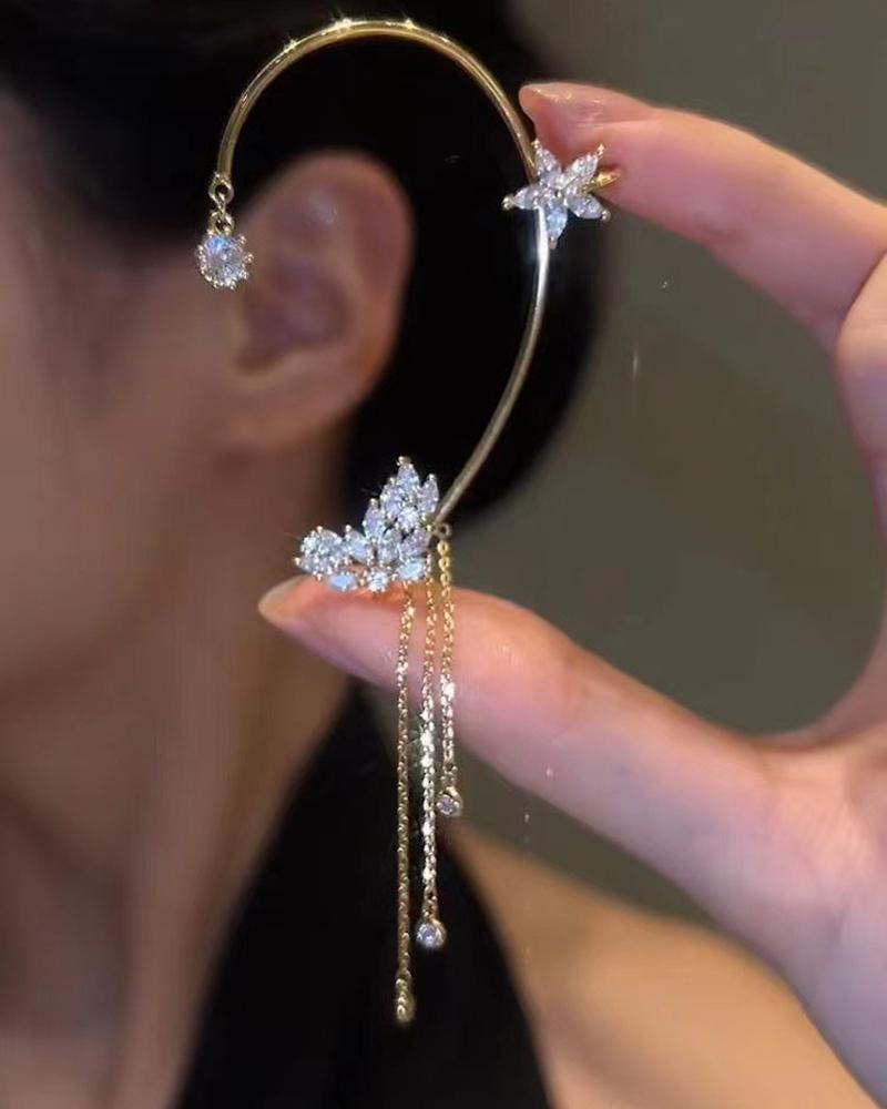 1pc Rhinestone Star Butterfly Pattern Tassel Ear Climber, Gold