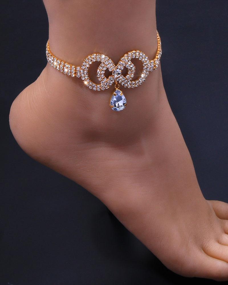 1pc Rhinestone Waterdrop Decor Anklet, Gold
