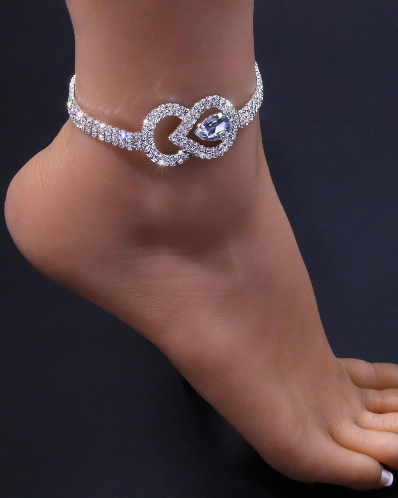 1pc Rhinestone Waterdrop Decor Anklet, Silver