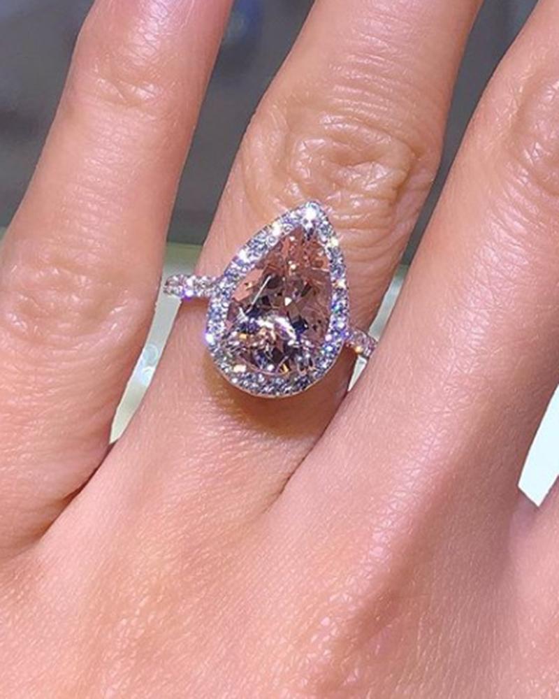 1pc Rhinestone Waterdrop Shaped Wedding Ring, Gold